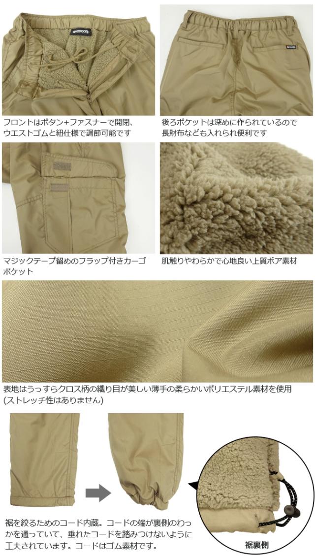 暖パン 裏ボア カーゴパンツ OUTDOOR アウトドアプロダクツ 8642 防寒パンツ イージーパンツ ウォームパンツ 裏起毛 メンズ 4カラー アウトドア ワーク カジュアル 作業着