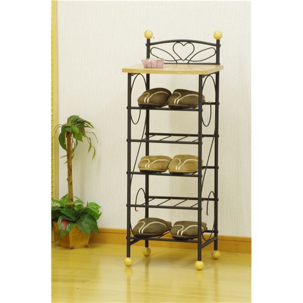天然木の天板が付いたモダンでエレガントなスリッパラックです。天板には小物・観葉植物を置いたりと様々な用途でお使い頂けます。本体ポールは紛体塗装を施し、ビンテージ家具の様なざらつきのある味わい深い風合いが、ナチュラルな天然木・ハート柄のデザインで柔らかい雰囲気に仕上がっております。