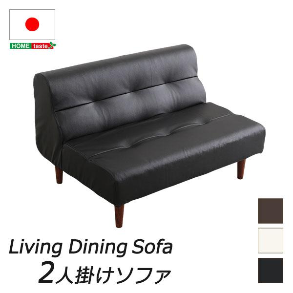 モダン ダブルソファー 〔2人掛け ブラック〕 幅約110cm 日本製 脚付き PVCレザー 『SHUNgiTE シュンガイト』 【北海道・沖縄・離島配送不可】