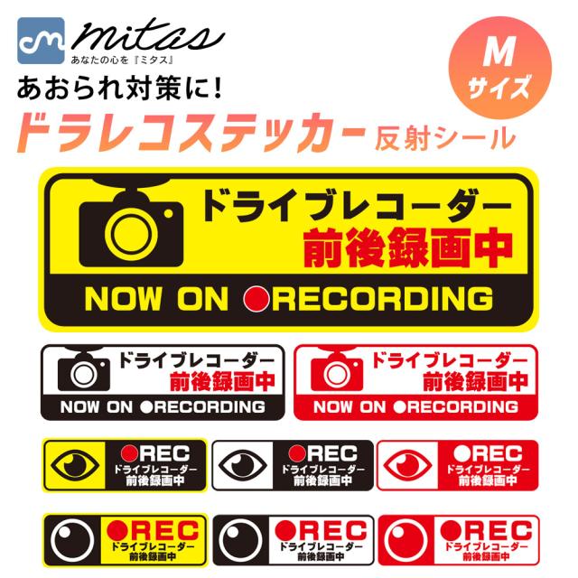 【mitas公式】ドラレコ ステッカー Mサイズ 長方形 15x5cm シールタイプ 反射 シール ヘッドライトに反射して光る 録画中 あおり運転対策 ドライブレコーダー