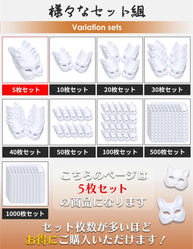 狐面 猫面 お面 狐 猫 マスク コスプレ ペイント 無地 白 おめん 紙パルプ製 半面 5枚セット