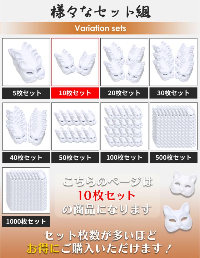 狐面 猫面 お面 狐 猫 マスク コスプレ ペイント 無地 白 おめん 紙パルプ製 半面 10枚セット