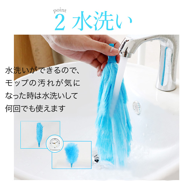 水洗いができるので、モップの汚れが気になった時は水洗いをして何回でも使えます。