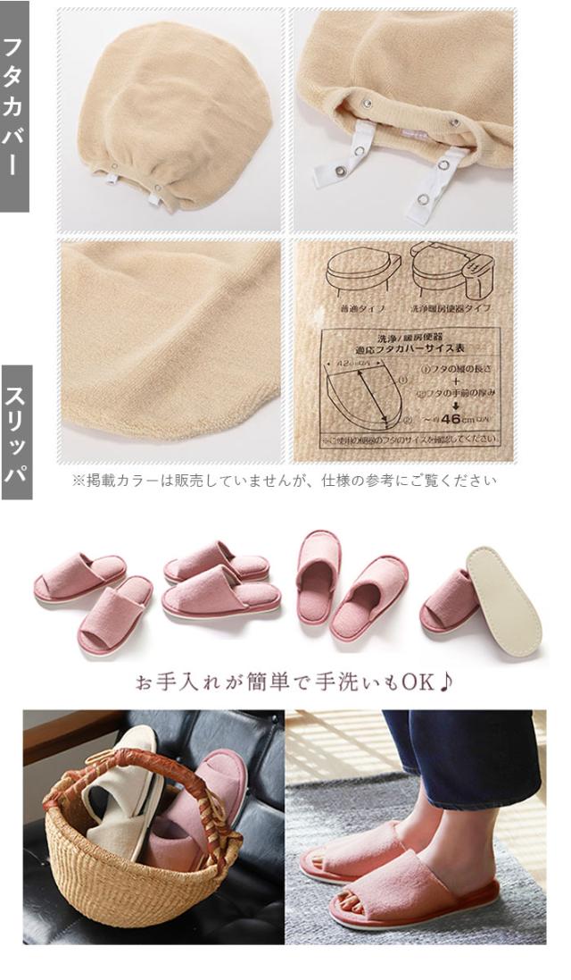 | 重量 | 【トイレ足元マット】約335g 【トイレ兼用フタカバー】約125g 【スリッパ】約131g |