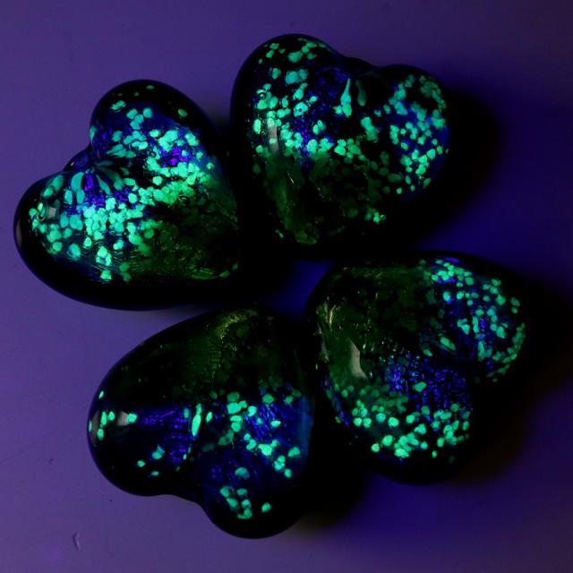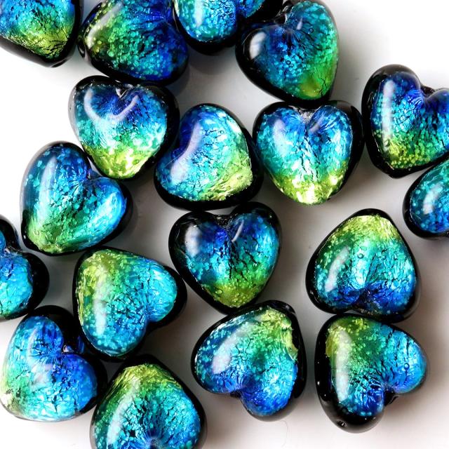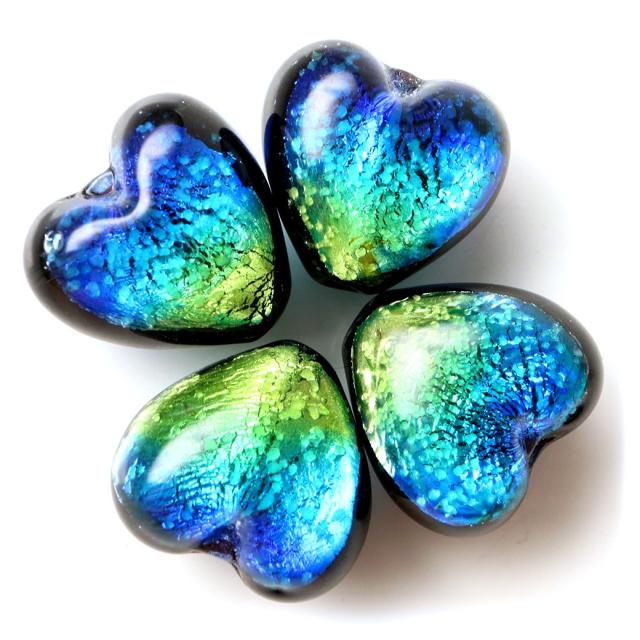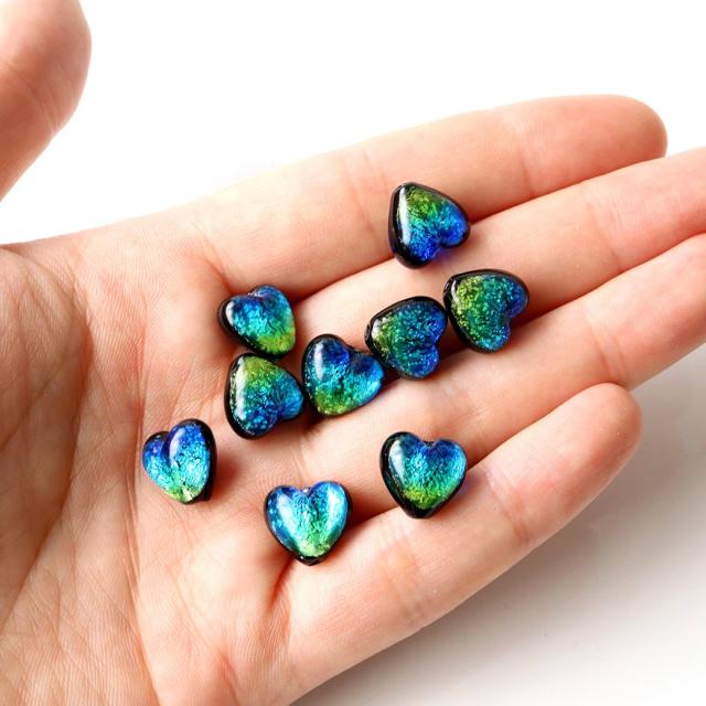 光る ケラママリン ホタルガラス ハート型 約12 x 12 x 8mm 粒売り 1粒 とんぼ玉 沖縄 お土産