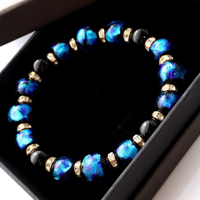 ホタルガラス ブルー ブレスレット 沖縄 人気 お土産 パワーストーン ネコポス送料無料