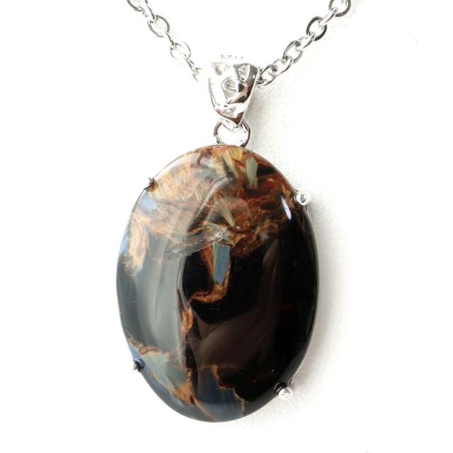 タイガーアイは、クロシドライトの繊維が直線的ですが、ピータサイトはうねって形成されているのが特徴です。特に青い色味を発するものは稀少で、さまざまな鉱物が入り乱れ渦を巻いているように見えることから「テンペストストーン(嵐の石)」とも呼ばれます。