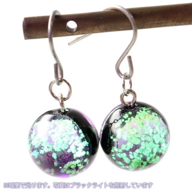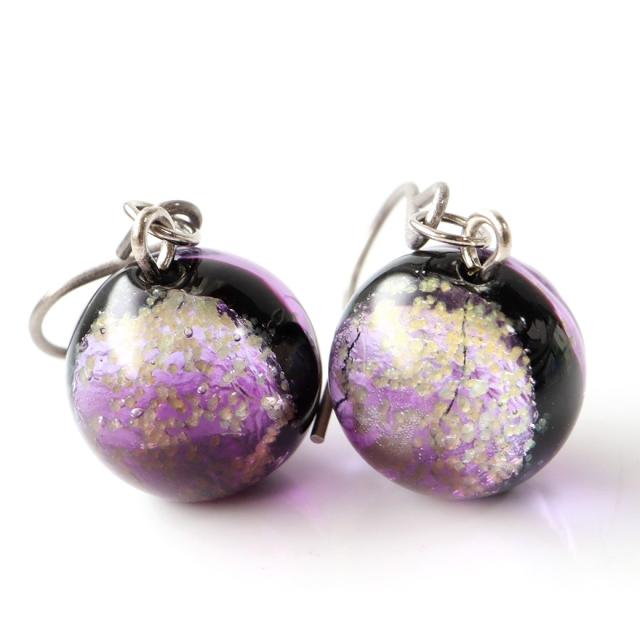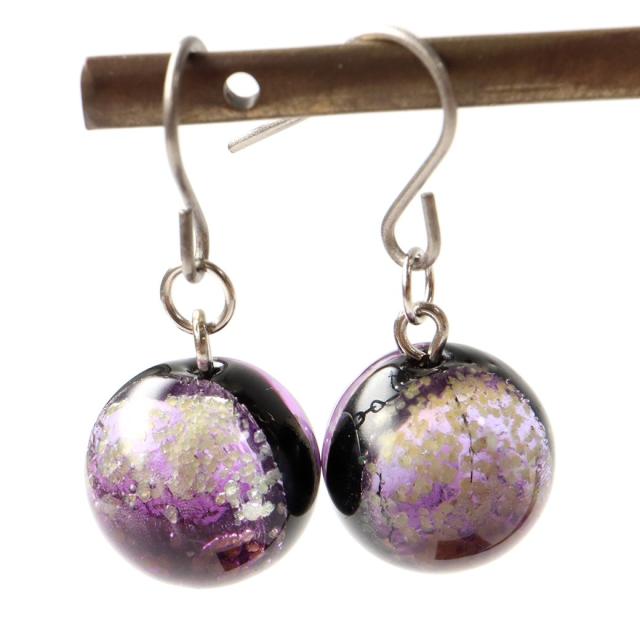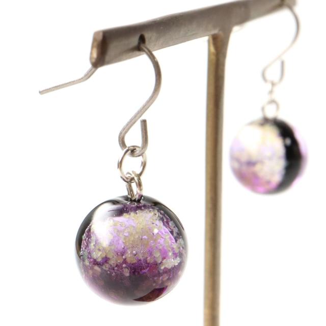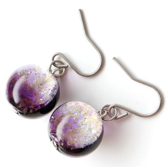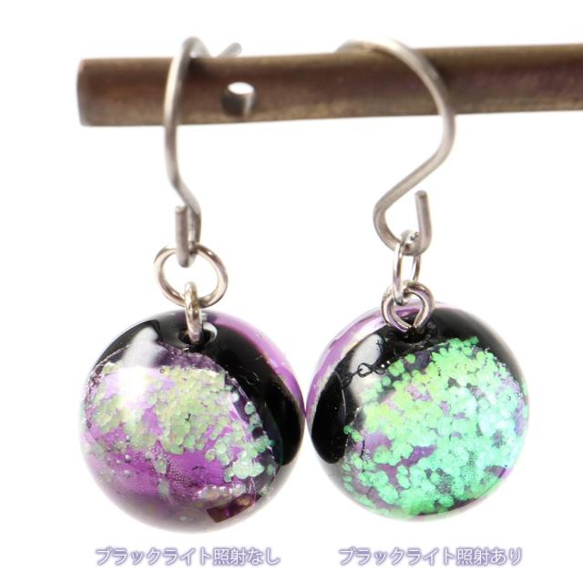 光る マリンパープル ホタルガラス ピアス 両耳用 沖縄 お土産 ネコポス送料無料