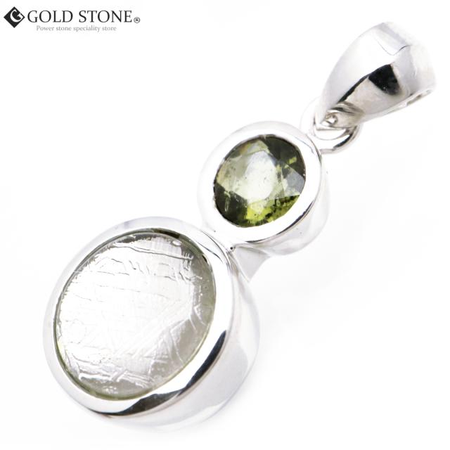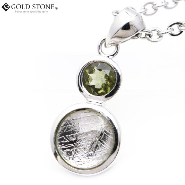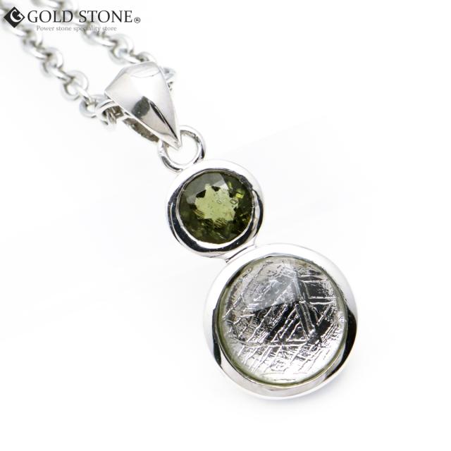 ギベオン ペンダント 隕石 ナミビア産 モルダバイト付き Silver925 ステンレスチェーン付き