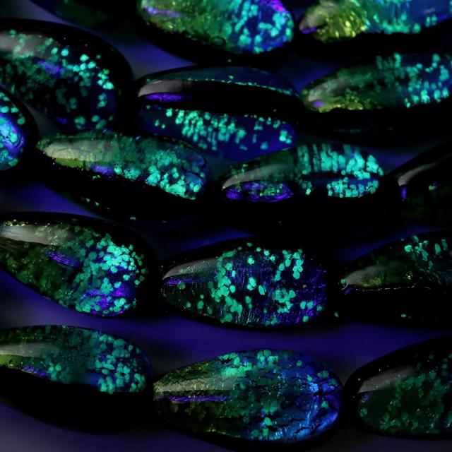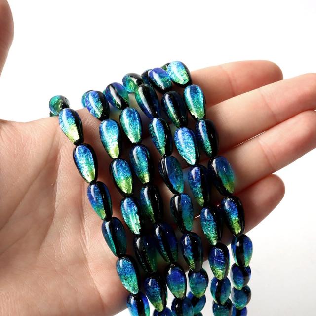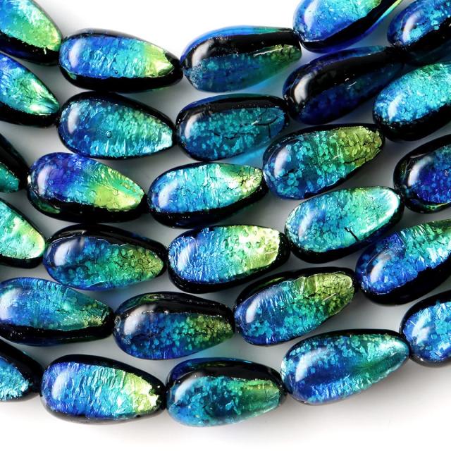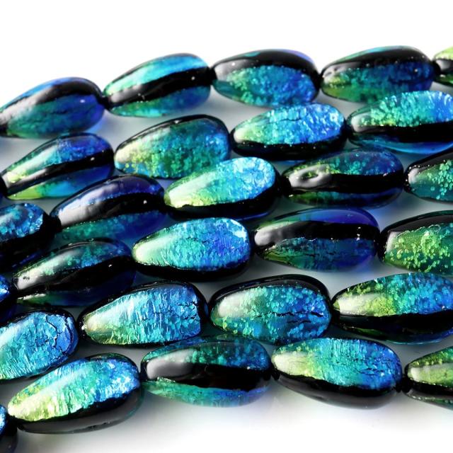 光る ケラママリン ホタルガラス しずく型 ドロップ 約15 x 8mm 一連 ビーズ売り(26粒) とんぼ玉 沖縄 お土産 ネコポス送料無料