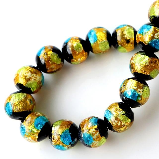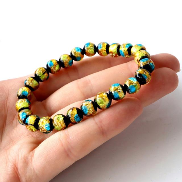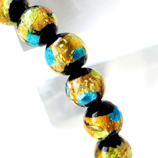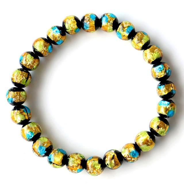 光る ホタルガラス イエロー ブルー MIX 8mm ブレスレット とんぼ玉 青色 黄色 沖縄 お土産 ネコポス送料無料