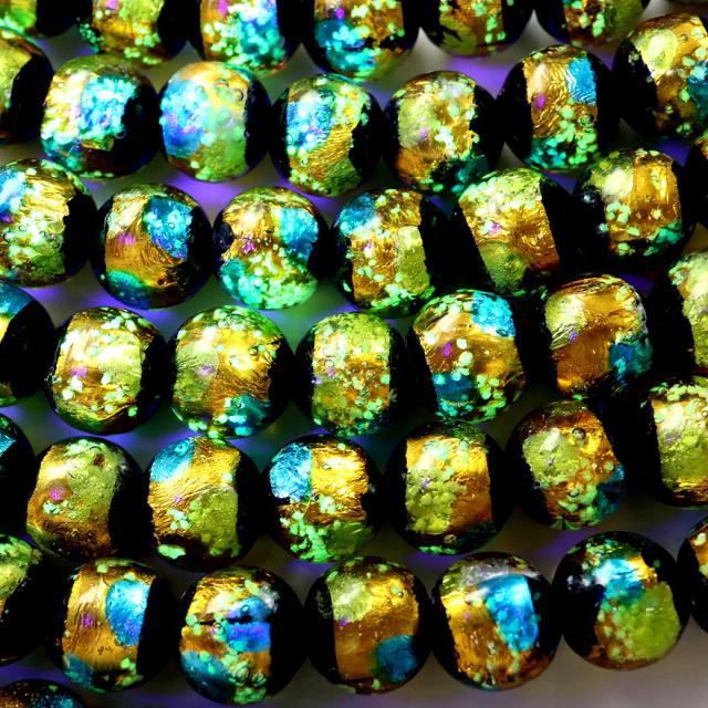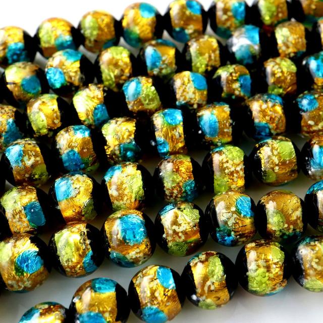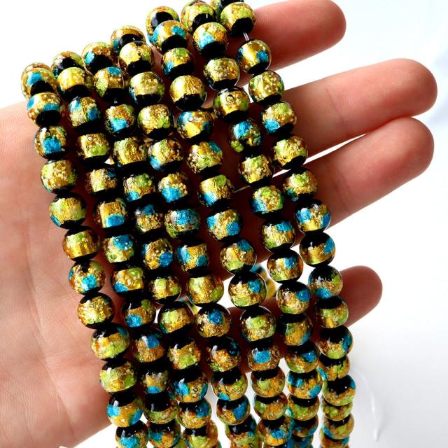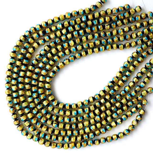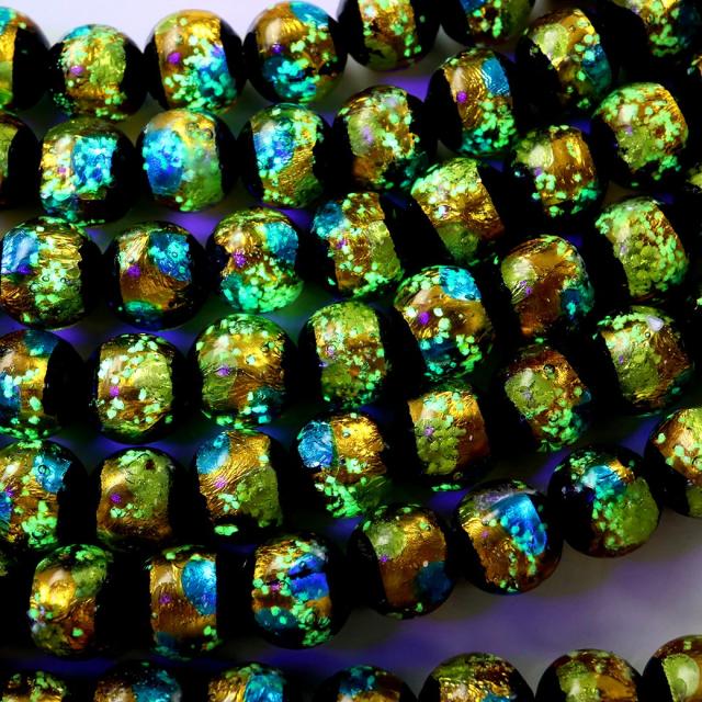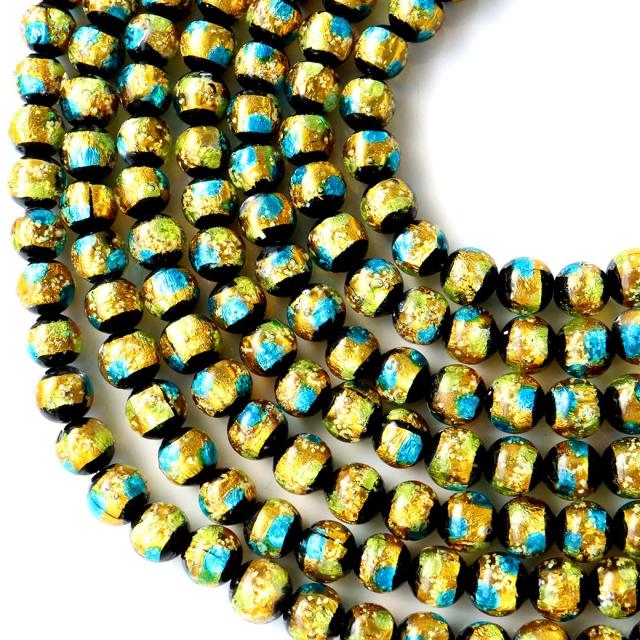 光る ホタルガラス イエロー ブルー MIX 8mm 一連 ビーズ売り(52粒) とんぼ玉 青色 黄色 沖縄 お土産 ネコポス送料無料