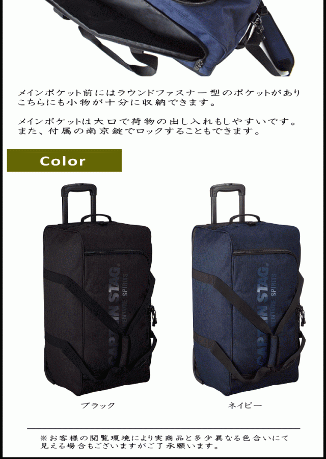 ボストンキャリーバッグ CAPTAIN STAG キャプテンスタッグ 3way ボストンキャリー 1253 キャリーバッグ ボストンバッグ 大容量 2輪キャスター 1泊 2泊 3泊 ブラック色 ネイビー色 グレー色 2輪 黒色 アウトドア 南京錠付き スポーツ用 レジャー用 修学旅行用