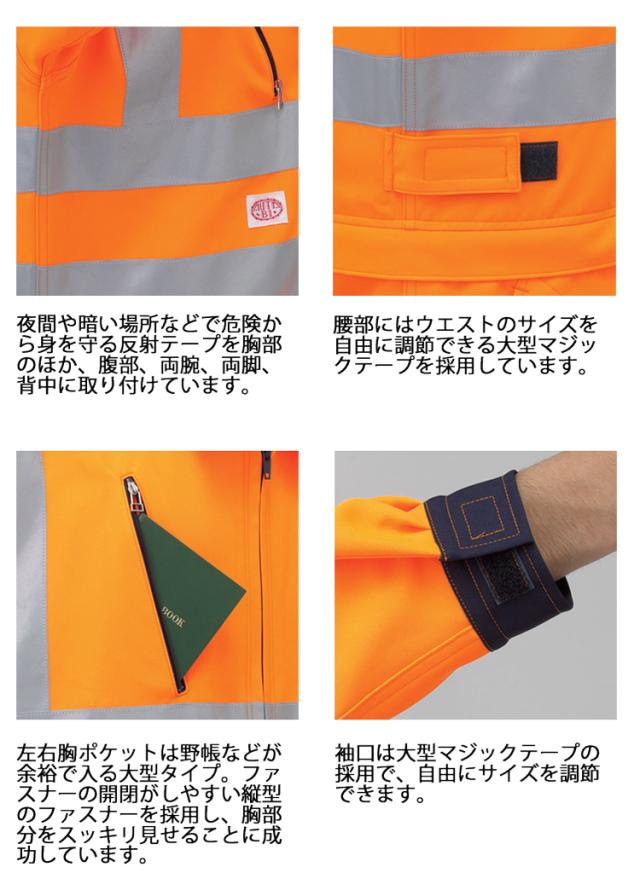オールシーズン 作業服 AUTO-BI 山田辰 高視認反射型つなぎ服 長袖 1-7630 オートバイ 通年