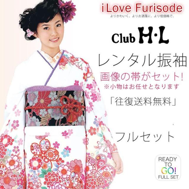 レンタル 絵羽振袖 貸衣装 フルセット 貸衣装 画像の帯がセット HL アッシュ・エル【往復送料無料!】成人式・結婚式・ふりそで【No.1491】