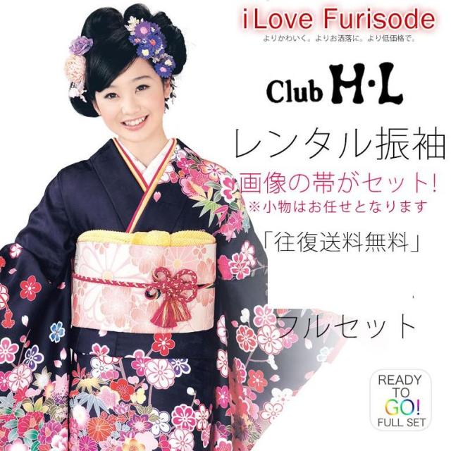 レンタル 絵羽振袖 貸衣装 フルセット 貸衣装 画像の帯がセット HL アッシュ・エル【往復送料無料!】成人式・結婚式・ふりそで【No.1505】