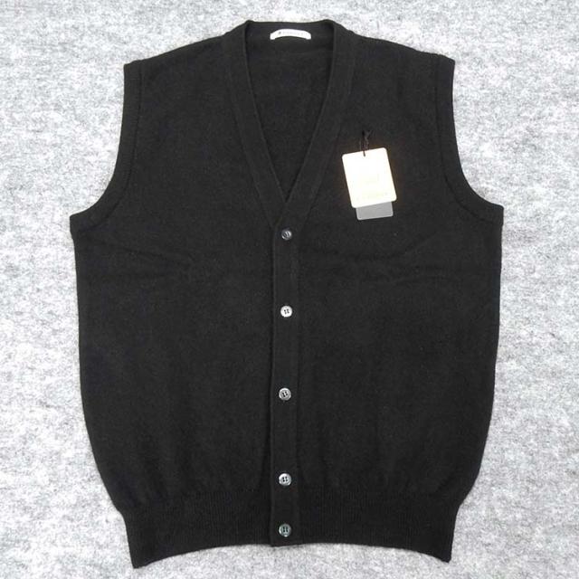 深喜毛織 カシミヤ100% 前開き Vネックベスト 黒 メンズ 日本製 フカキ 71070-BK