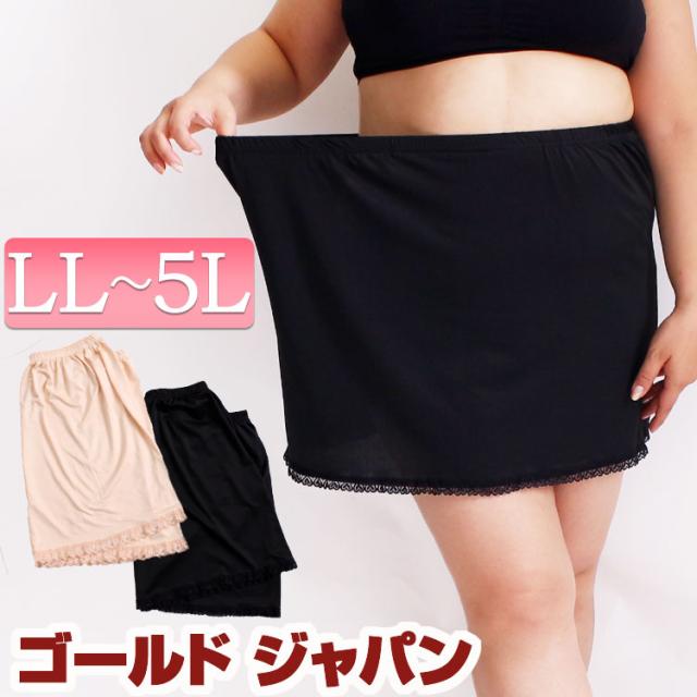 春新作 ペチコート 大きいサイズ レディース インナー 下着 ペチコート レースペチコート レース 透けない サテン 膝上 ミドル丈 キュロット ストレッチ 秋 冬 春 LL 2L 3L 4L 5L LLサイズ XL XXL 13号 15号 17号 19号 ブラック black 黒 ベージュ beige ゴールドジャパン