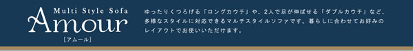 ゆったりくつろげる「ロングカウチ」や、2人で足が伸ばせる「ダブルカウチ」など、多様なスタイルに対応できるマルチスタイルソファです。