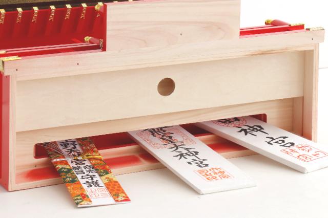 天照大御神と稲荷神宮はもとより、氏神様、なじみのある神社など、集まった何枚かのお神札もまとめてお納めします。商売繁盛、開運昇運、家内安全と厄除、平穏と安らぎ、さまざまな願いを込め、祀る心も華やかに。