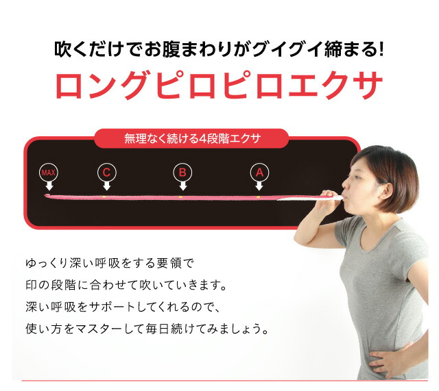 腹式呼吸 エクササイズ ロングブレス ピロピロ ダイエット 健康 ダイエット器具 腹式呼吸 ブレストレーニング お腹 引き締め 脂肪燃焼 有酸素運動 器具 エクササイズ ぽっこりお腹 解消 メタボ対策 下腹 お腹痩せ