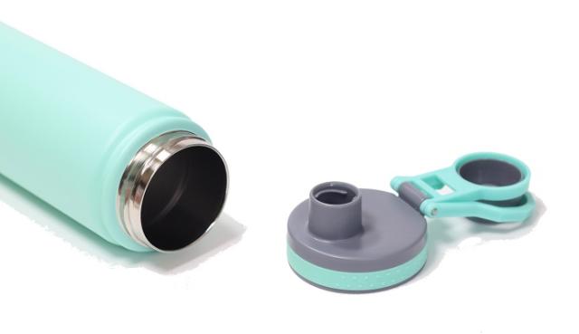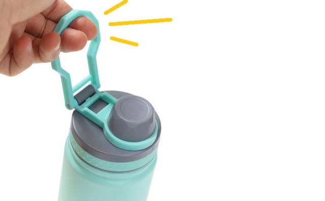 ・漏れ防止キャップは1/2回転で開閉が可能で、サッとひねってすぐに飲むことができます。
