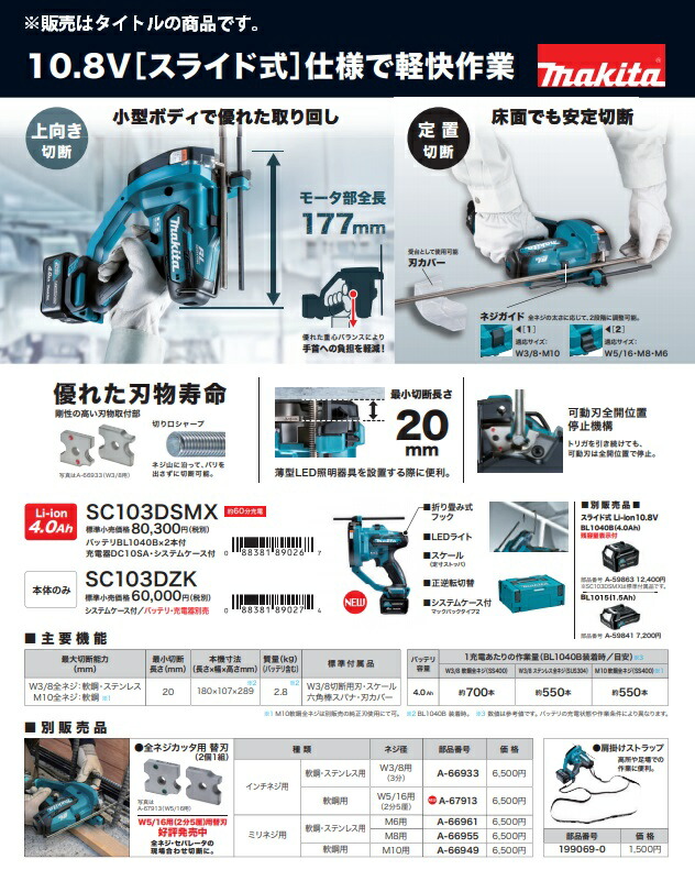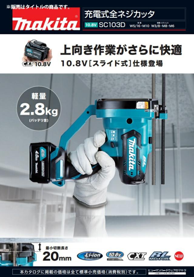 (マキタ) 充電式全ネジカッタ SC103DSMX 4.0Ah バッテリBL1040Bx2本+充電器+システムケース付 コードレス全ねじカッタ 10.8V対応 makita