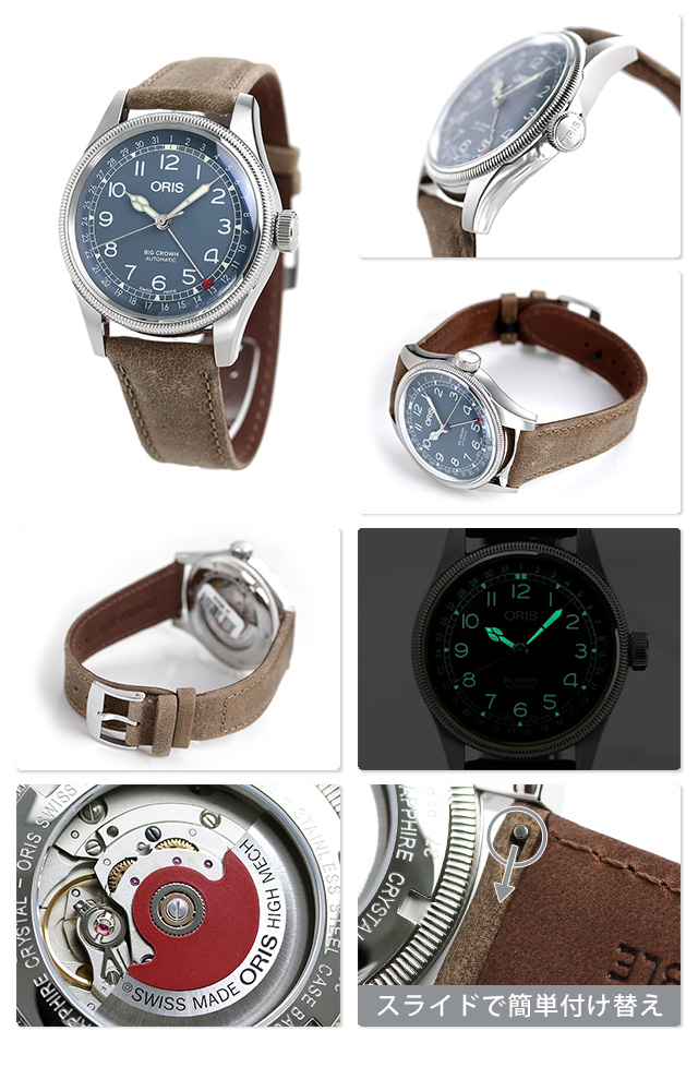 正規品 7年保証キャンペーン オリス ビッグクラウン ポインターデイト 40mm スイス製 自動巻き メンズ 腕時計 754-7741-4065LBR ORIS BIG CROWN アナログ ラウンド ブルー×ブラウン 革ベルト ◆ORIS(オリス)は、ポール・カッティン氏とジョージ・クリスチャン氏の2人によってスイスのヘルシュタインで創設されました。近くを流れる小川にちなんで社名をオリスと命名。手頃な価格ながら、革新的で高機能かつ実用的な機能を備えた本格機械式時計で知られ、世界中の時計ファンから愛されているブランドです。 オリスと航空を結びつけたビッククラウンは、1938年誕生以来パイロットウォッチの原型になったコレクション。時代を超越したオリジナルモデルへの忠実なオマージュです。ビッグクラウンポインターデイト誕生80周年を記念したモデル。パイロットがグローブを着けたまま操作できる大型リューズ(クラウン)とセンター針で日付を示す特殊なコンプリケーションを備えた、先駆的な時計です。カジュアルスタイルにはもちろん、クラシックな大人の装いにも味わいを添えてくれます。 機械式腕時計