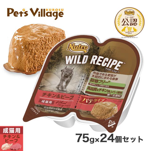 公認店 ニュートロ ワイルドレシピ キャットフード 成猫用 チキン&ビーフ パテタイプ 75g×24個 ごはん ご飯 ワイルドレシピ WILD RECIPE キャットフード