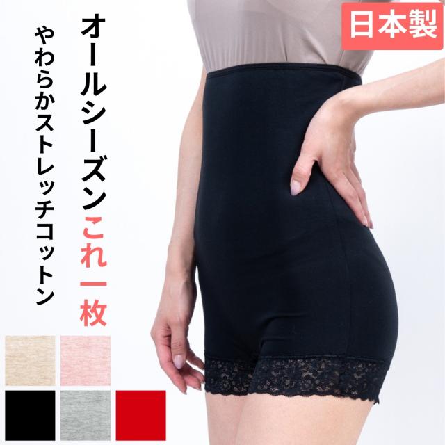 ストレッチ性抜群の伸びる『綿』素材で、ヒップからおなかまでをやさしく暖かく包み込みます。