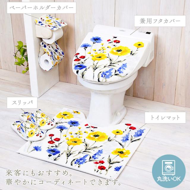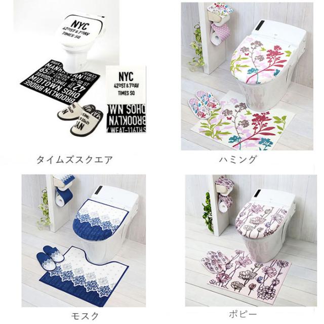 トイレマットセット 4点 通販 おしゃれ トイレカバーセット 花柄 フラワー フタカバー 蓋カバー スリッパ ペーパーホルダー 洗える 洗濯可 丸洗い トイレタリー かわいい シンプル モダン トイレファブリック トイレ セット 引っ越し 新生活 ギフト プレゼント