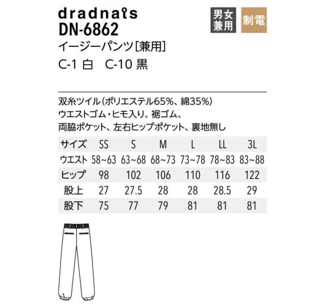 飲食サービス系ユニフォーム アルベ arbe チトセ chitose 男女兼用 イージーパンツ DN-6862 通年