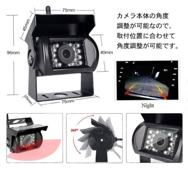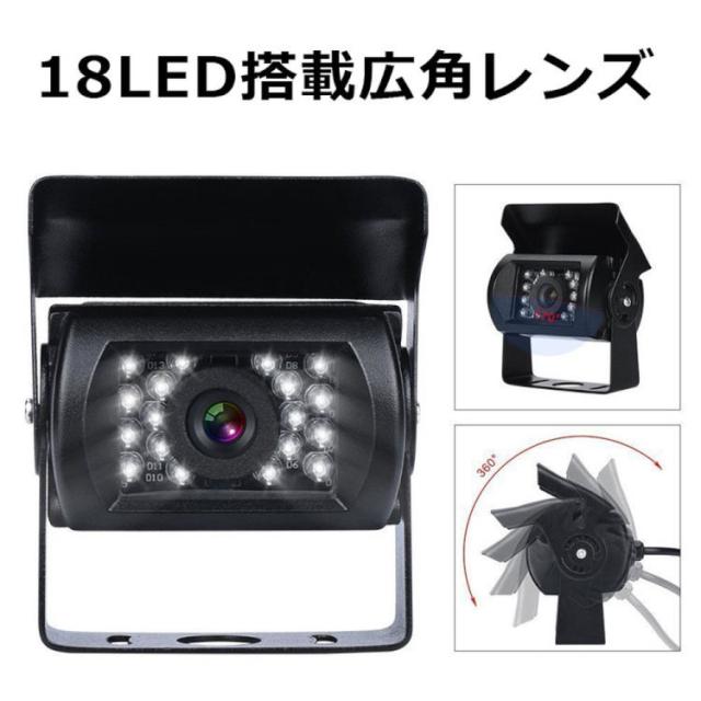 車載バックカメラ+20m映像ケーブルセット RCA信号専用 ガイドライン表示 LED18灯暗視機能 角度調整 12V/24V対応 大型 重機に BK700CB020