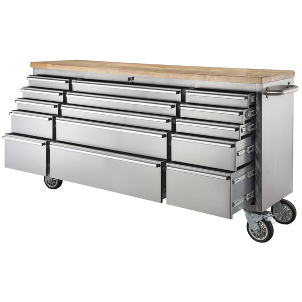 ツールキャビネット 幅199cm ステンレス製 木天板 キャスター付 ( キャビネット ワゴン キッチンワゴン ステンレス 業務用 大型キャスター 鍵 鍵付き 大容量収納 家具 天然木 ホテル レストラン 厨房 キッチン )