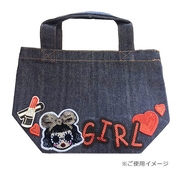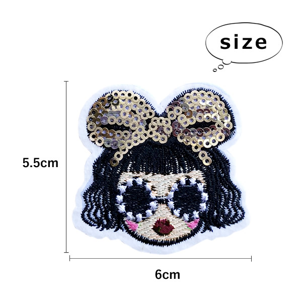 ワッペン スパンコール アイロン接着 縦5.5cm×横6cm Sサイズ ガール 女の子 アイロンワッペン 手芸 デコ アップリケ母の日 プレゼント ギフト