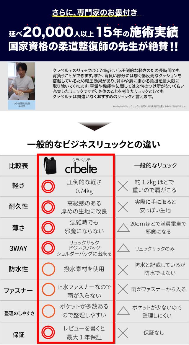圧倒的な軽さ0.74kg 雑誌GetNavi掲載 ビジネスリュック メンズ 超軽量 防水 20L 3WAY 通勤 スーツ リュックサック バックパック PC パソコン ビジネスバッグ 15.6インチ リュック crbelte クラベルテ