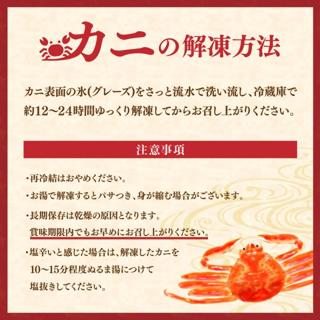 ・ボイル済みですので、解凍後そのままお召し上がりいただけます。 ・賞味期限内、未開封であれば返品対応可能な場合がございますが、開封後や一度口にした商品は返品、返金等の対応はできません。 しょっぱいなど味に関する返品・返金は対応できません。真水等でお好みの塩加減へ塩抜きしてください。