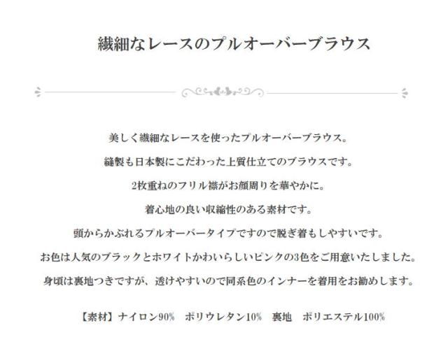 美しく繊細なレースを使ったプルオーバーブラウス。