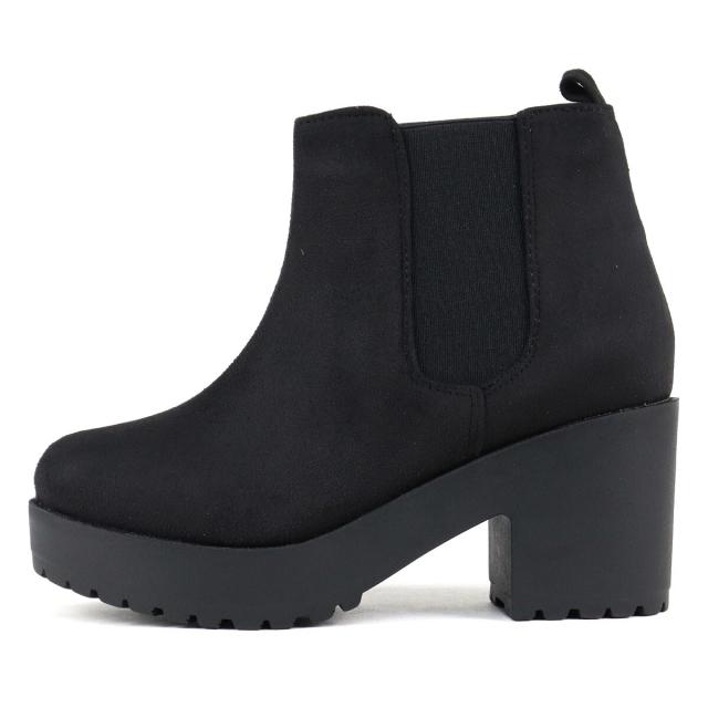 シンプルなデザインで様々なスタイルに取り入れやすい厚底サイドゴアブーツ。
