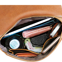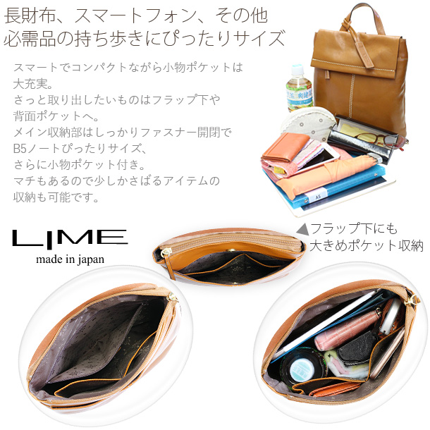 長財布、スマホ+必需品の収納に便利なサイズはスマートで洗練された大人の印象。懐かしいようなランドセルを思い起こすフラップ付タイプ。小さくて頼れる、使うほどに愛おしくなるリュックサックです。