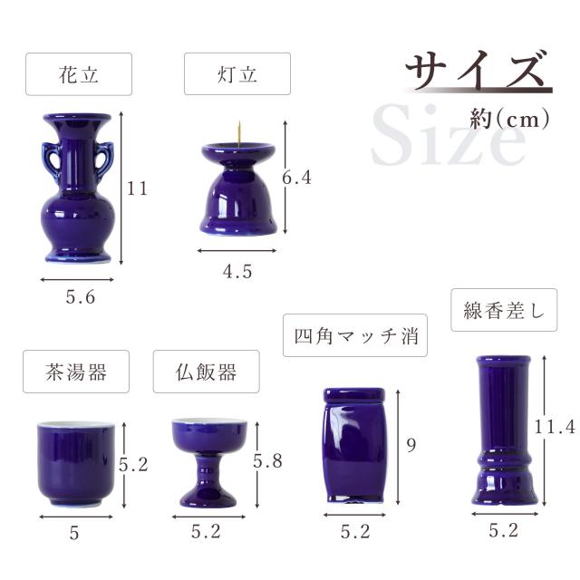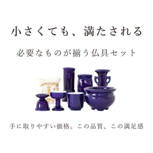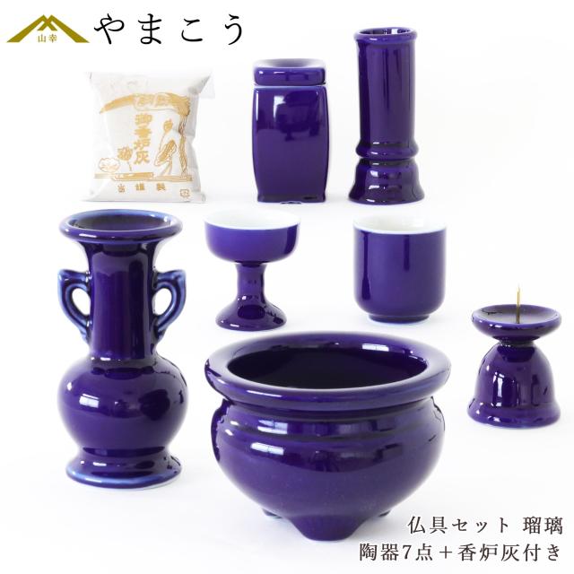仏具 セット 陶器7点 (瑠璃 ルリ) + 香炉灰 仏具セット おしゃれ モダン 線香立て マッチ消 国産 日本製 仏壇セット モダン仏具 モダン仏壇 お盆 お彼岸 お墓参り お供え 供養 法事 法要