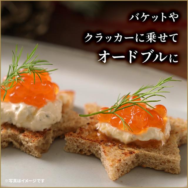 原材料:鱒卵(ロシア産)、醤油、オリゴ糖、還元水飴、食塩、鰹節エキス、米発酵調味料、みりん/調味料(アミノ酸等)、pH調整剤、(一部に小麦・いくら・大豆・さばを含む)