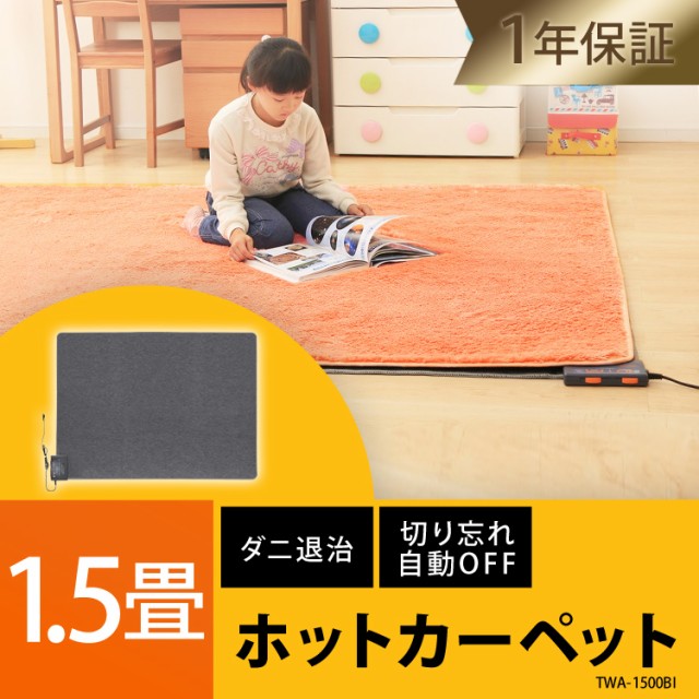 ホットカーペット 1.5畳 本体 180×125 長方形 電気カーペット 1.5畳用 ホットマット 電気マット 速暖 暖房 温度調節 切忘れタイマー 簡単 操作 ダニ対策 足元暖房 床暖房 暖房器具 ホットカーペット本体のみ テクノス TEKNOS TWA-1502B *