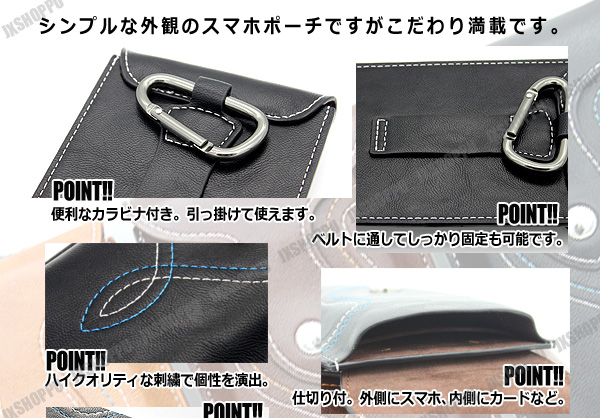 マルチ スマホ ポーチ [ブラック] iPhone 13 Pro Max Android等に ベルトポーチ 柔らか PU レザー 革 腰 ケース カバー 収納 送料無料
