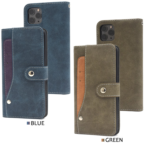 スマートフォンケース iPhone11ProMax用 手帳型 スライドカードポケット シンプル カジュアル スタイリッシュ 装着簡単 スマホカバー 横開き SoftBank au docomo オーソドックス スタンダード くすみカラー