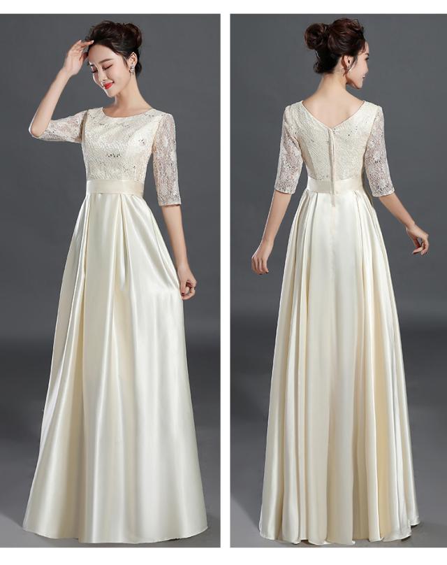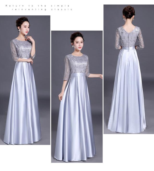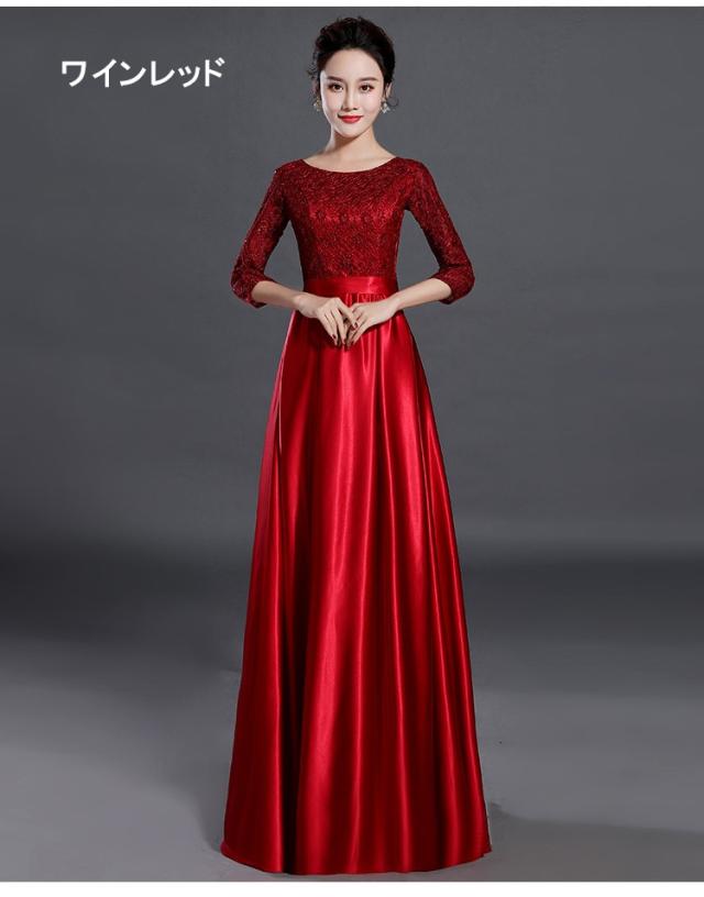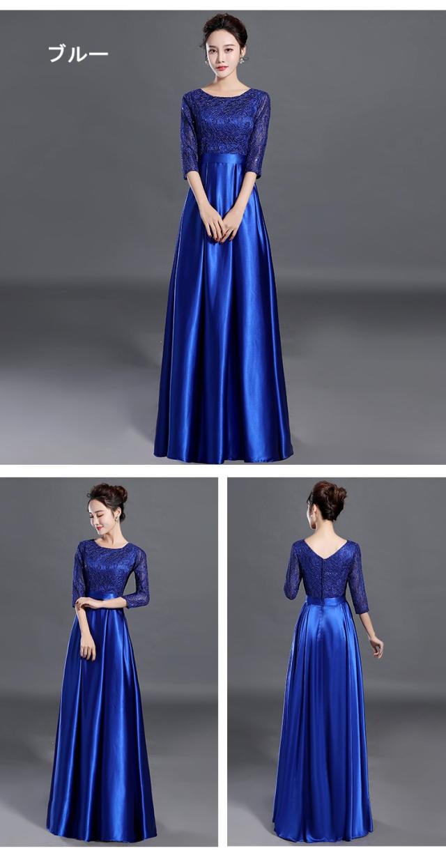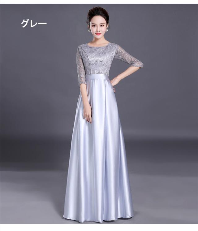 ロングドレス パーティドレス ワンピ 舞台ドレス 5分袖 黒 赤 青 グレー 発表会 演奏会 イベント 大きいサイズ オーダーサイズ可 D117