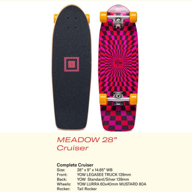 YOW サーフスケート サーフクルーザー ヤウ MEADOW PINK 28インチ メドウ [32] SURFCRUSIERS コンプリート クルーザー スケートボード 街乗り 移動 CRUISERS LEGASEE ARTISTE SERIES 日本国内正規品