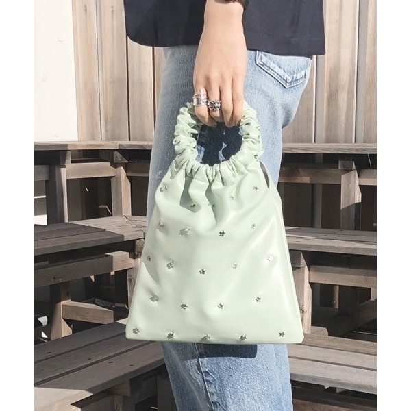 スタースタッズがキュートなBAG。名前の通り、持ち手がクシュクシュしたデザインバッグは普段のお出掛けも楽しくなること間違いなし。コーディネートに合わせやすい4色展開。