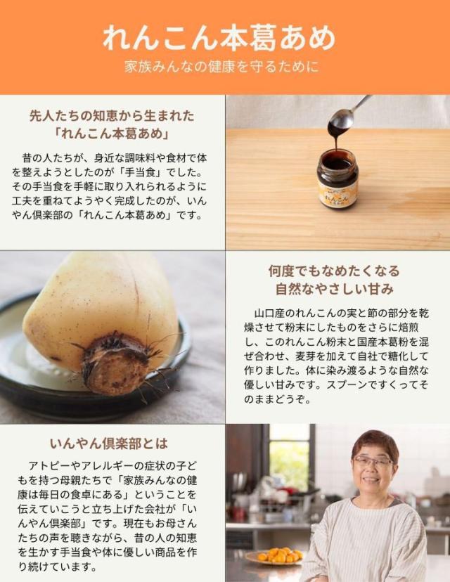 | 本葛粉(国内産)、れんこん粉末(国内産)、麦芽(カナダ産、国内加工) |