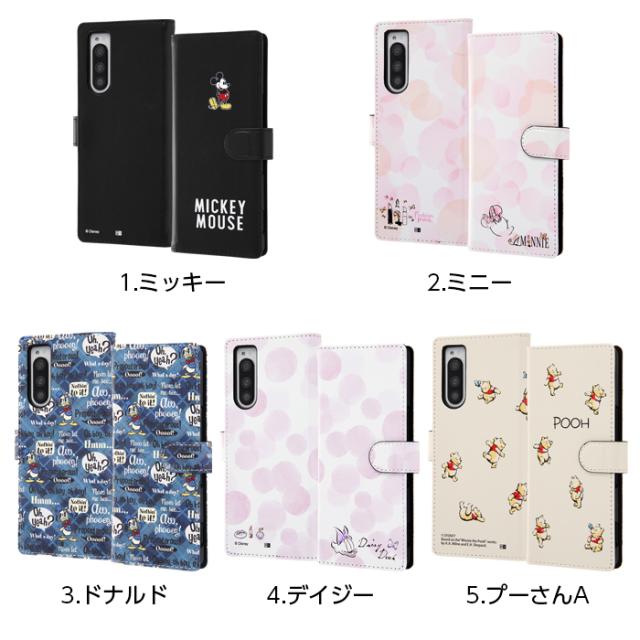 Xperia 5 ケース カバー 手帳型 ミッキー ミニー プーさん ドナルド ディズニー レザー 革 カード入れ ポケット 収納 かわいい SO-01M SOV41 エクスペリア